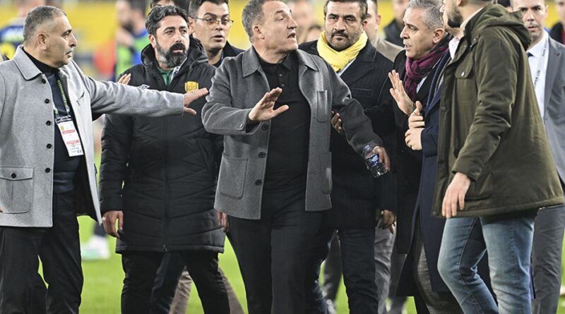 İLİŞKİLİ HABERLERHalil Umut Meler görüntüleri izledi ve kararını verdiAnkaragücü – Rizespor maçının ardından hakem Halil Umut Meler’e saldıran ev sahibi takımın başkanı Faruk Koca ve 5 kişi adliyeye sevk edildi.Hakem Meler’e yumruk attıktan sonra rahatsızlanarak hastaneye kaldırılan Başkan Faruk Koca tedavisinin ardından taburcu edildi. Hastaneden çıkarılan Faruk Koca, Ankara’da Batı Adliyesi’ne getirildi ve diğer saldırganlarla birlikte Savcı tarafından dinlendi.Mahkemeye çıkarılan Faruk Koca için tutuklama kararı verildi.