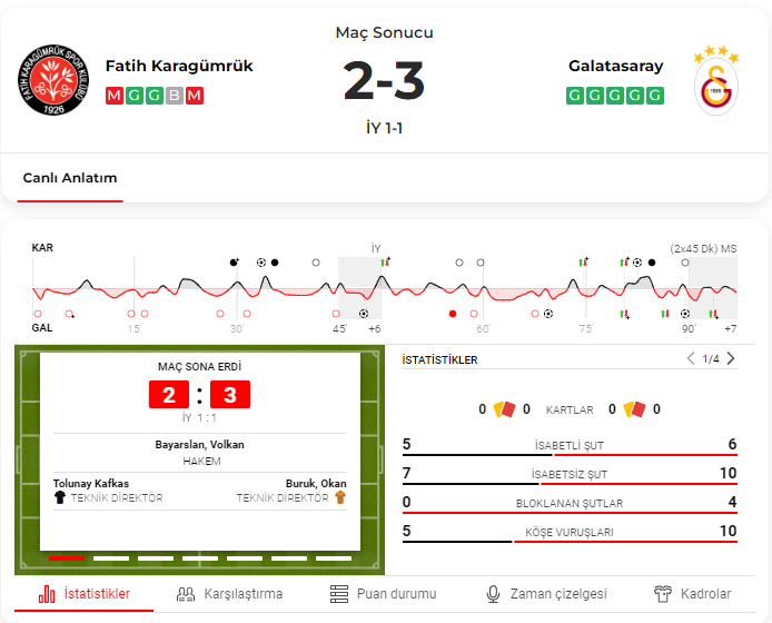 Türkiye’nin gözü kulağı bugün Atatürk Olimpiyat Stadı’ndaydı… Galatasaray Süper Lig’in 36. haftasında Fatih Karagümrük’le karşılaştı. Cim Bom gol düellosu şeklinde geçen maçta zor da olsa kazanmasını bildi! Aslan 3-2’yle güldü! Sarı-Kırmızılılar gelecek hafta derbide kazanması halinde üst üste ikinci kez şampiyon olacak!