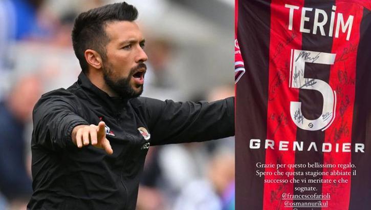 Başarılı hoca, Fatih Terim’e de sürpriz bir hediye yolladı. İtalyan hoca, Terim’e tüm takım imzalı Nice forması gönderdi. Pakette de ‘Unico Grance Imperatore’ (Tek büyük imparator) yazması dikkat çekti. Kendisine gelen imzalı formayı kişisel sosyal medya hesabında paylaşan Fatih Terim de Farioli’ye teşekkürlerini iletti.